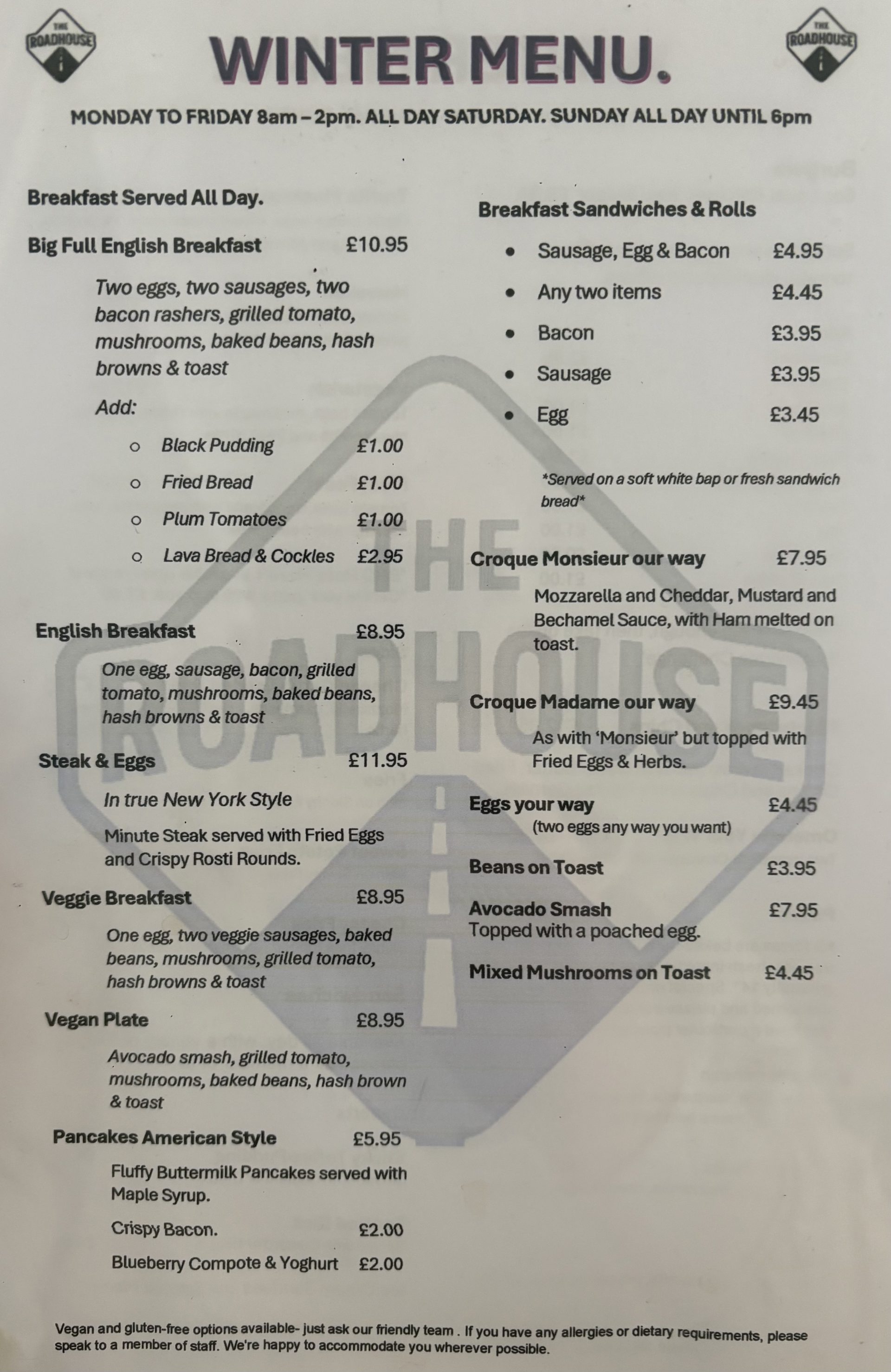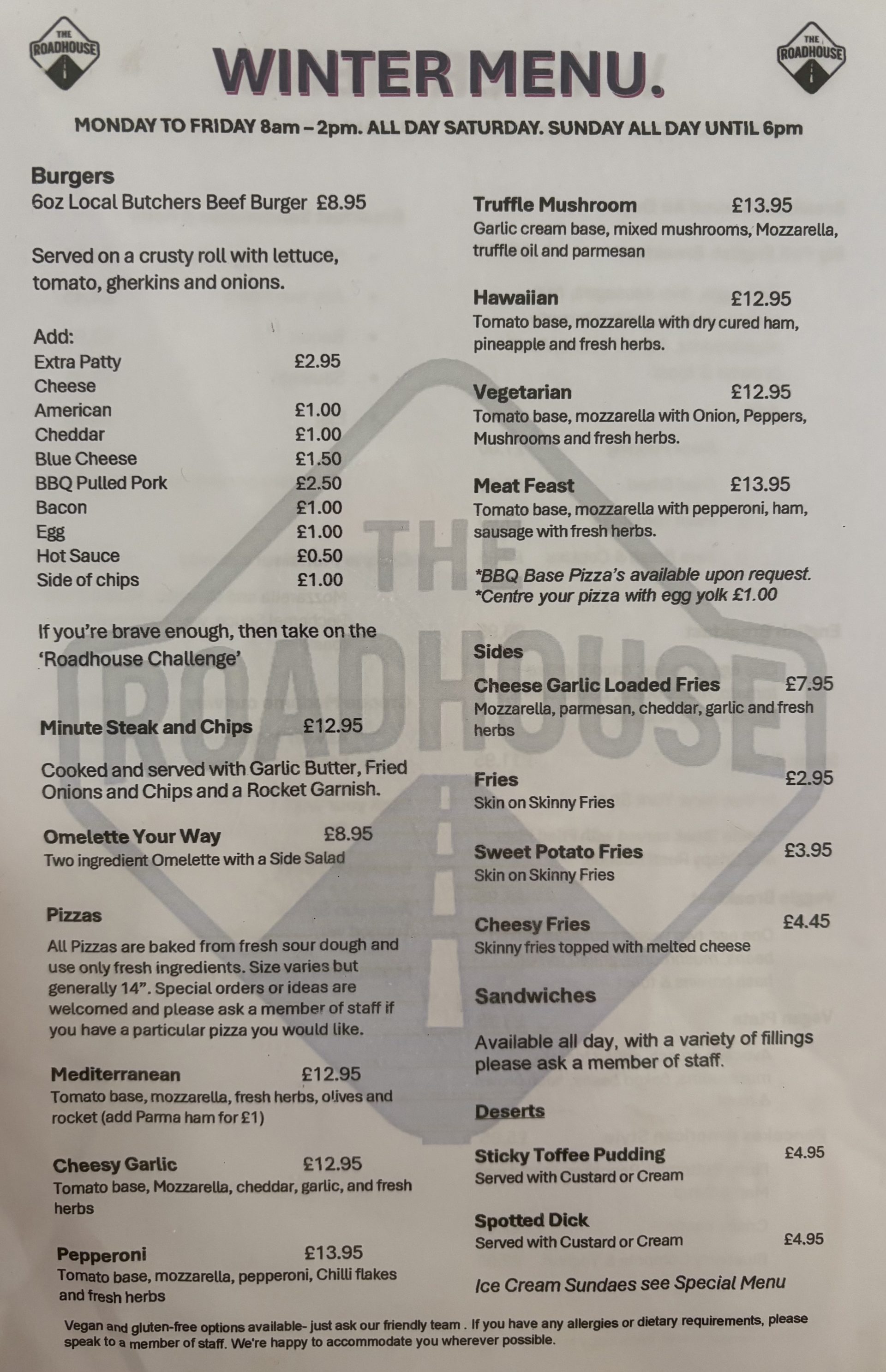 We’re family-friendly, biker-welcoming and even dog-friendly. Whether you want a quiet coffee or a lively evening out, The Roadhouse Cafe & Bar delivers.